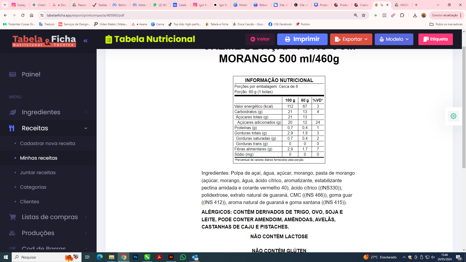 Ingredientes: Polpa de açaí, água, banana, açúcar, polidextrose, ácido cítrico ((INS330)), extrato natural de guaraná, goma guar ((INS 412)), CMC ((INS 466)), aroma natural de guaraná e goma xantana ((INS 415)).